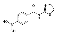 Product Name: N-(THIAZOLINE-2-YL) 4-BORONOBENZAMIDE Order number: 207332 CAS: 850568-30-8 Purity: 97% Appearance: n.a. MF: C10H11BN2O3S MW: 250.082 MP: n.a. oC Description: Boronic acids are widely used in organic chemistry, pharmaceuticals, materials science, and sensor technology. |