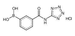 Product Name: (3-((1H-tetrazol-5-yl)carbamoyl)phenyl)boronic acid hydrochloride Order number: 207340 CAS: 850567-38-3 Purity: 98% Appearance: n.a. MF: C8H9BClN5O3 MW: 269.453 MP: n.a. oC Description: Boronic acids are widely used in organic chemistry, pharmaceuticals, materials science, and sensor technology. |