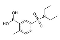 Product Name: (5-(N,N-Diethylsulfamoyl)-2-methylphenyl)boronic acid Order number: 207401 CAS: 871329-80-5 Purity: 98% Appearance: n.a. MF: C11H18BNO4S MW: 271.141 MP: n.a. oC Description: Boronic acids are widely used in organic chemistry, pharmaceuticals, materials science, and sensor technology. |