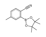 Product Name: 4-Methyl-2-(4,4,5,5-tetramethyl-1,3,2-dioxaborolan-2-yl)benzonitrile Order number: 207444 CAS: 863868-22-8 Purity: >95% Appearance: n.a. MF: C14H18BNO2 MW: 243.109 MP: n.a. oC Description: Boronic acids are widely used in organic chemistry, pharmaceuticals, materials science, and sensor technology. |