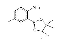 Product Name: 2-Amino-5-methylphenyboronic acid, pinacol ester Order number: 207502 CAS: 948592-80-1 Purity: 97% Appearance: n.a. MF: C13H20BNO2 MW: 233.114 MP: n.a. oC Description: Boronic acids are widely used in organic chemistry, pharmaceuticals, materials science, and sensor technology. |