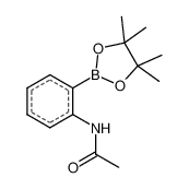Product Name: N-(2-(4,4,5,5-Tetramethyl-1,3,2-dioxaborolan-2-yl)phenyl)acetamide Order number: 207704 CAS: 380430-61-5 Purity: 96% Appearance: n.a. MF: C14H20BNO3 MW: 261.125 MP: n.a. oC Description: Boronic acids are widely used in organic chemistry, pharmaceuticals, materials science, and sensor technology. |