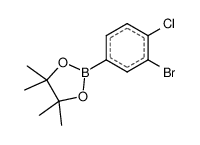 Product Name: 2-(3-Bromo-4-chlorophenyl)-4,4,5,5-tetramethyl-1,3,2-dioxaborolane Order number: 209219 CAS: 1256781-68-6 Purity: >95% Appearance: n.a. MF: C12H15BBrClO2 MW: 317.414 MP: n.a. oC Description: Boronic acids are widely used in organic chemistry, pharmaceuticals, materials science, and sensor technology. |