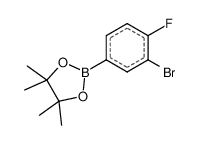 Product Name: 2-(3-Bromo-4-fluorophenyl)-4,4,5,5-tetramethyl-1,3,2-dioxaborolane Order number: 210883 CAS: 1646842-16-1 Purity: 98% Appearance: n.a. MF: C12H15BBrFO2 MW: 300.96 MP: n.a. oC Description: Boronic acids are widely used in organic chemistry, pharmaceuticals, materials science, and sensor technology. |