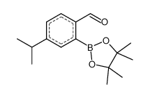 Product Name: 4-isopropyl-2-(4,4,5,5-tetramethyl-1,3,2-dioxaborolan-2-yl)benzaldehyde Order number: 210951 CAS: 1353580-66-1 Purity: >95% Appearance: n.a. MF: C16H23BO3 MW: 274.163 MP: n.a. oC Description: Boronic acids are widely used in organic chemistry, pharmaceuticals, materials science, and sensor technology. |