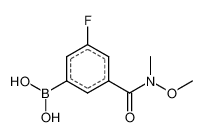 Product Name: (3-fluoro-5-(methoxy(methyl)carbamoyl)phenyl)boronicacid Order number: 210971 CAS: 1451392-31-6 Purity: >95% Appearance: n.a. MF: C9H11BFNO4 MW: 226.997 MP: n.a. oC Description: Boronic acids are widely used in organic chemistry, pharmaceuticals, materials science, and sensor technology. |