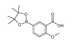 Product Name: 2-methoxy-5-(4,4,5,5-tetramethyl-1,3,2-dioxaborolan-2-yl)benzoicacid Order number: 210973 CAS: 2121512-71-6 Purity: >95% Appearance: n.a. MF: C14H19BO5 MW: 278.109 MP: n.a. oC Description: Boronic acids are widely used in organic chemistry, pharmaceuticals, materials science, and sensor technology. |