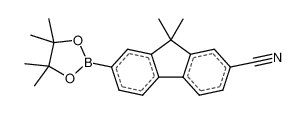 Product Name: 9,9-Dimethyl-7-(4,4,5,5-tetramethyl-1,3,2-dioxaborolan-2-yl)-9H-fluorene-2-carbonitrile Order number: 206512 CAS: 1539314-85-6 Purity: 95% Appearance: n.a. MF: C22H24BNO2 MW: 345.243 MP: n.a. oC Description: Boronic acids are widely used in organic chemistry, pharmaceuticals, materials science, and sensor technology. |
