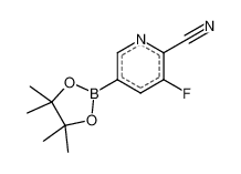 Product Name: 3-Fluoro-5-(4,4,5,5-tetramethyl-1,3,2-dioxaborolan-2-yl)picolinonitrile Order number: 206524 CAS: 13566-65-3 Purity: 95% Appearance: n.a. MF: C12H14BFN2O2 MW: 248.061 MP: n.a. oC Description: Boronic acids are widely used in organic chemistry, pharmaceuticals, materials science, and sensor technology. |