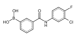 Product Name: N-(3-Chloro-4-fluorophenyl) 3-boronobenzaMide Order number: 206549 CAS: 1072946-04-3 Purity: 95% Appearance: n.a. MF: C13H10BClFNO3 MW: 293.486 MP: n.a. oC Description: Boronic acids are widely used in organic chemistry, pharmaceuticals, materials science, and sensor technology. |
