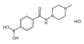 Product Name: (4-((4-Methylpiperazin-1-yl)carbamoyl)phenyl)boronic acid hydrochloride Order number: 206573 CAS: 913835-43-5 Purity: 97% Appearance: n.a. MF: C12H19BClN3O3 MW: 299.562 MP: n.a. oC Description: Boronic acids are widely used in organic chemistry, pharmaceuticals, materials science, and sensor technology. |