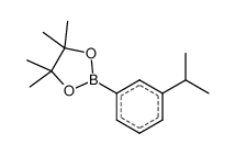 Product Name: 2-(3-Isopropylphenyl)-4,4,5,5-tetramethyl-1,3,2-dioxaborolane Order number: 206706 CAS: 325142-89-0 Purity: 97% Appearance: n.a. MF: C15H23BO2 MW: 246.153 MP: n.a. oC Description: Boronic acids are widely used in organic chemistry, pharmaceuticals, materials science, and sensor technology. |