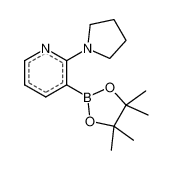 Product Name: 2-(Pyrrolidin-1-yl)-3-(4,4,5,5-tetramethyl-1,3,2-dioxaborolan-2-yl)pyridine Order number: 206709 CAS: 1073354-41-2 Purity: 98% Appearance: n.a. MF: C15H23BN2O2 MW: 274.166 MP: n.a. oC Description: Boronic acids are widely used in organic chemistry, pharmaceuticals, materials science, and sensor technology. |