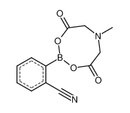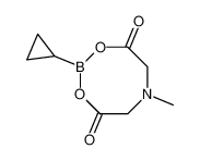 Product Name: 2-Cyclopropyl-6-methyl-1,3,6,2-dioxazaborocane-4,8-dione Order number: 206783 CAS: 1104637-36-6 Purity: 98% Appearance: n.a. MF: C8H12BNO4 MW: 196.996 MP: n.a. oC Description: Boronic acids are widely used in organic chemistry, pharmaceuticals, materials science, and sensor technology. |