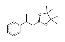 Product Name: 4,4,5,5-Tetramethyl-2-(2-phenylpropyl)-1,3,2-dioxaborolane Order number: 206853 CAS: 280559-30-0 Purity: 98% Appearance: n.a. MF: C15H23BO2 MW: 246.153 MP: n.a. oC Description: Boronic acids are widely used in organic chemistry, pharmaceuticals, materials science, and sensor technology. |