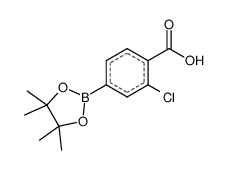 Product Name: 2-Chloro-4-(4,4,5,5-tetramethyl-1,3,2-dioxaborolan-2-yl)benzoic acid Order number: 207132 CAS: 890839-31-3 Purity: 96% Appearance: n.a. MF: C13H16BClO4 MW: 282.528 MP: n.a. oC Description: Boronic acids are widely used in organic chemistry, pharmaceuticals, materials science, and sensor technology. |